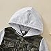 Design: Toddler boys autumn hooded coat featured long sleeve,hoddie ,button down patchwork jacket with 2 pockets on the chest.