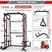 EXCELLENT QUALITY: Made of 50 X 70mm commercial steel square frame with a thickness of 2mm. The product weighs 276lbs, which significantly improves the stability of the cage during exercise. Cage size – 60” L x 61” W x 83” H | Max user weight – 400 lbs. | Max Capacity Smith Machine Bar – 500 lbs. | Max capacity on Safety catches – 500 lbs.|Max capacity on cable 400lbs.