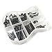 The whole kit includes 10 types of screws for electric guitar, total 161 pieces. This is the upgraded version with a custom guitar shaped storage box with magnetic cover, and extra 12 sets of humbucker pickup screws in imperial thread which can be used for EMG, Seymour Duncan, Dimarzio pickups.