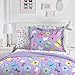 Full/Queen-size set with Purple Unicorns print includes a 90 x 90-inch comforter, 90 x 102-inch flat sheet, 60 x 80 x 14-inch fitted sheet, (2) 20 x 26-inch shams, and (2) 20 x 30-inch pillowcases