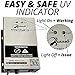 ON Indiciator Light- LED on device to signal if UV-C light bulb is functional or not without having to remove the UV light system to check.