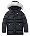 COZY FUR HOOD-The kids puffer heavyweight dress coat has a decent fleece lining hood with fur trim to help your little boy keep head cozy in the cold environment. And the fur trim is non-removable and washable design, shake it to return the previous fluffy shape.