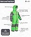 LINING & LAYERING: OAKI Kids Rain/Snow Suits have reinforced liner and tapped seams which ensures unmatched strength and the ability to add layers under the suit to fit the climate and needs of your adventure, the suits are not insulated. Additional features include, inside drawstring for snug fit, brimmed hood, reflective strips, neoprene/elastic ankle and wrist cuffs, waterproof zipper and more.