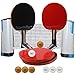 【QUALITY TABLE TENNIS SET】: The indoor and outdoor ping pong rackets set for 4 players comes with 4 paddles, 8 balls, 1 net and 1 Handy Carry storage case. You get all ping pong accessory at one time .The small size and light weight makes it very easy to transport and carry to anywhere you want . Pefect for team play with your family and friends. This table tennis paddle set is ideal for amateurs, beginners, and professional players