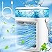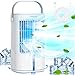 🧊【Upgraded 4 in 1 Portable Air Conditioner】This 2023 newest portable ac cooler combines air cooling, desktop fan, night light and humidificating functions. Just add ice cubes and water to the water tank, the wind go through 3 ice bottles, which makes it more efficient in air cooloing. You will enjoy a rapid cooling from the mini air conditioner. Which brings different cooling enjoyment for your summer.