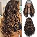 【Long Wavy Headband Wig】-- This is a trendy brown headband wig colored dark brown with blonde highlights, fashionable headband wigs for black women and girls daily wear; Great beginner wig designed with stretchy ice silky headband attached, no glue and easy to wear; 4 combs and adjustable velcro in the back, more secure and comfortable for high PONYTAIL & BUNS. A cool wig for a quick change of look, you will not be disappointed!