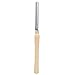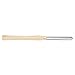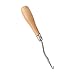 This bent/angled latch hook tool has a wooden handle and metal shaft