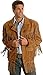 MATERIAL:- 100% Genuine Suede Leather Material Used. Superior leather-wear. Classy and more fashionable look. Excellent Fringe work on the coat. The jacket is made of top-quality suede leather. High quality lining with pockets and button closure. Strong and Genuine Leather Fringes On Chest-Front Waist-Shoulders-Arms -Upper Back.