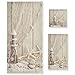 TOWELS SET INCLUDE: 1 large bath towel measuring 60 x 30 inches, 1 hand towel(28 x 16 inch), 1 wash cloth(13 x 13 inch ). 3 piece Nautical Seashell beige bathroom towels set are both functional and transformed your bathroom into a spa like look and feel.