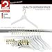 MADE IN GERMANY | Quality steel hanger with PVC coating which prevents clothes from slipping off and onto your floor. EURO SERIES | This series was created to support pullovers, outerwear, women’s sweaters, dresses, men’s dress shirts, and sweatshirts. No more shoulder bumps! Each hanger measures 16.25"w x 9.5"H and is .37" thick