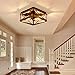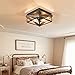 【Farmhouse Style Design】This square light fixtures ceiling mount is made of metal and wood frame, simple geometric shape elaborate X-shaped rustproof metal frame with unique features and wood grain decoration to create a rustic vintage house style.
