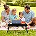 [EXPANDED TRAY AREA]: Area is 16.5"L X12.8"W, placing 10-inch plates, Beyond its peers storing 9-inch plates, When the folding legs are laid flat without tools in seconds, easy for anyone to carry lap tray to picnic, hospital, kitchen, bedroom