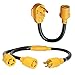 【 Industrial / Generator Y adapter】Y splitter adapter allows you to connect your RV and generator at the same time, with its 3 ft cable , and two receptacles, heavy-duty capabilities (125/250V | 3750/7500Watts)