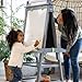 3-IN-1 art easel with a two-sided design featuring both a chalkboard and magnetic whiteboard ideal for art projects as well as practicing writing skills and number learning.