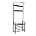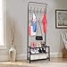 【MULTI FUNCITONAL STORAGE】 - 3-tier ample metal shelves provided to organize various size shoes,shoe boxes, and storage boxes. 18 open hooks can storage variety of home items,like your overcoat,umbrella,towels, and other accessories. Freestanding structure, this Entryway Rack can stand without against any wall or tucks neatly into any corner.