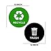 STRIKING COLORS AND EASY TO UNDERSTAND LABELS These set of stickers can be distinguished from one another by color and clear graphics which are easy to comprehend. Round in shape; green for recycle and black for trash. By providing people with an easy method of categorizing their waste they can see which items they can and can’t recycle and dispose of it accordingly.