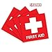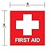 BOLD SIGN AND CLEAR GRAPHICS Super bold fonts, and simple graphics to reach an eye catching and high impact communication, this highly visible medical signs make your First Aid Kit message is hard to miss. These 4" x 4" inches sticker with crisp clean lines, white letters on red background maximizing visibility in any surface.