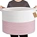 ✔️ [Sturdy&Reinforced Handles]: The big woven basket is equipped with built-in foldable handles making transporting convenient even when filled with items. Plus, it's easy to clean. The basket is hand or machine washable and can fold flat so you can take it with you as a pink hamper when you travel or in your car. 2023 all-new basket can stand up easily and take its round shape quickly. Cotton with better recovery. Good elasticity.