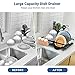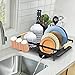 DESIGNED TO LOVE AND LAST: Made of rust-resistant vinyl coated steel and wooden handle, this dish drainer offers a sleek silhouette with a lightweight designed compared to traditional dish racks, allowing you to put away under the sink when not in use. The self-draining rack is designed with a lipped edge that directs water into the sink preventing water from pooling over the counters.