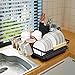 PREMIUM QUALITY AND GENEROUS CAPACITY: Comes with dish rack, black drainboard, 5 cup holder attachments, a wide utensil holder and knife holder attachment. This dish drying rack has featured an extra large capacity that can accommodate your plates, dishes, cups, forks, spoons, knives and more for effortless drying.Wooden handle make it easy to carry.