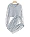 Material: polyester + cotton. Super soft, cozy, and comfy shirts and pants. The loungewear set is medium-weight, stretchy, durable and skin-friendly