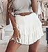 Features: shirred elastic waist, ruffle hem, plain/solid color, smocked high waist, tiered mini skirt with shorts underneath