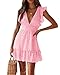 Features: floral print, deep v neckline, flutter sleeve, empire waist, ruffle hem, above knee length, cute boho swing dress, flare a-line mini dress