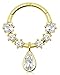 Design of Gold Conch Piercing Jewelry: Septum Clicker with Dangle Teardrop, Make your Septum Ring full of Temptation and Mystery. Shinny Clear CZ Enable You a Unique Fashionable Sense.
