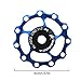 Material: This bike derailleur pulley adopts quality aluminum alloy and ceramic material. It uses anti-rust and anti-corrosion materials to ensure long-term use, and resistant anodized machined bicycle jockey wheel ensure normal working.