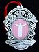 The annual ornament hangs on a white satin ribbon and displays beautifully on the tree or window