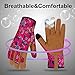 EASY TO PUT ON AND ADJUST: The gloves are designed with elastic in the wrist area, which allows plenty of room to fit kids hands inside and to find the finger holes. The hook and loop closure allows for adjustability and a tight, secure fit to keep the gloves on. These are great for active girls that enjoy playing in the snow, and they are also well suited for little kids since they are easy to wear.