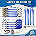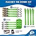 MULITIFUNCTIONAL: Tie down straps ratchet mechanism offers durability and security to transport a variety of objects. Securely tie down your motorcycle, bike, kayak, UTV, boat, ATV, boxes, boat, other cargo via trailers, bear-proof garbage cans, vehicle and truck accessories or car roof rack.