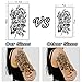 [EASY TO USE] Remove clear film, apply hand tattoo on clean dry skin, dab tattoo with damp paper towel, Remove paper, let tattoo dry. It's simple to use semi permanent temporary tattoos look real and last long arm tattoo. The entire process of applying big or small tattoo stickers takes less than one minute.