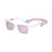 Adjustable, moisture-wicking, elastic neoprene strap. The adjustable shoulder straps of the sunglasses provide a more stable fit. Strap Material: 95% Polyester, 5% Neoprene. As your baby grows, the shoulder straps can be adjusted to your baby's head circumference or removed