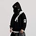 Features funnel hoodie, patchwork arm design, front pouch pocket