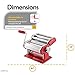 MEASUREMENTS: This pasta maker weighs 5.4 pounds and has dimensions of 8 x 14 x 6.5 inches.