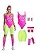 Package includes: 1 piece retro 80s/90s swimwear, 1 pair of Neon Legging, 1 pair of Sweatbands (Headband/Wristband Set), 1 pair of magnetic tape Cassette earrings,1 Pair Leg warmers,complete your demands on 80's costume accessories