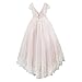 V back with functional buttons closed;Fixed beaded belt on waist; Princess tulle skirt floor length with lace appliques on hem;