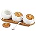 Wonderful Design: a set of 3 ceramic spice jars to suit your different needs, delicate whitening bottle, smooth and beautiful curves, white porcelain and bamboo wood to match,Along with a well quality made wooden base rack to organize your spice jars in place, add a fun to your kitchen. (The base is in the cardboard interlayer, Don't miss it~)