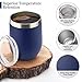 Keeping coffee hot up to 3 hours is why we love this coffee mug! Our vacuum insulated stainless steel coffee cup is made of 304 Grade - 18/8 stainless steel with a BPA free push-seal lid. No need to worry about burning your hand on the cup. It is cool to the touch! This coffee lover gift includes one blue 12 ounce capacity cup with lid that is best in class & quality, and makes the best coffee gifts for men & women.