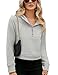 [FEATURES] Casual workout sweatshirt, long sleeve with thumbhole, relaxed fit, 1/2 zip up stand collar, cropped length just right around the waistband, solid color, kangaroo pockets, fleece lined block out cold and chill