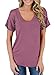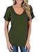 Trendy and elegant v neck t-shirt with puff sleeve,solid color, is a cute tops for women