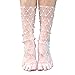 SHEER LACE TULLE - Millennials In Motion's fairycore designer inspired luxury transparent black lace socks with polka dot pattern. These elegant thin mesh sexy socks are perfect pairing for heels or ankle boots. Wear it as a dress stocking for heels