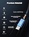 [Premium Materials] - Built-in smart Chipset for high-speed audio signal decoding and offer a full and delicate tone, highly restored quality sound. Robust Sapphire Blue Metal Housing ensures a wear-resistant, anti-corrosion, solid protection, and charming out looking. This aux to USB adapter tightly combined 20 Strands of three Cores, enameled copper, soft, and durable PVC covers. Its high-density shielding protection ensures high stability sound transmission and a soft touch.
