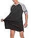 ใLOOSE PULLOVER DESIGNใ- Short Sleeve Sleep Shirt for men with contrast colored striped V-neckline and cuffs, Loose fit style, Knee Length, Long sleep shirt with pockets. Pullover nightshirt design is easy to put on and take off, Perfect for lounging & shopping&matches with your daily leisure&relaxing around the house on Weekends.