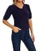 ใFeaturesใ Puff Short Sleeve Sweater for Women. Loose fitting, v neck, cute puff sleeves, ribbed collar, ribbed cuffs and ribbed hemline.