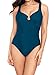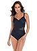 Cleverly draped fabric conceals tummy area, effortlessly slimming your midsection and making you look longer and leaner. Moderate cut leg visually lengthens and slims legs.