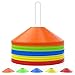 SPORT ROUND CONES - Make excellent soccer cones for use as a running course or a soccer goal post, agility cones, activity cones, football equipment, basketball gear and overall great sports equipment and sports accessories for anyone