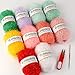 Starter set for crochet beginners includes 10 different color polyester yarn skeins.