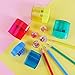Includes: 6 x Dual Hole Cute Pencil Sharpeners In Vibrant Colors: Yellow, Green, Blue, Orange, Red And Purple